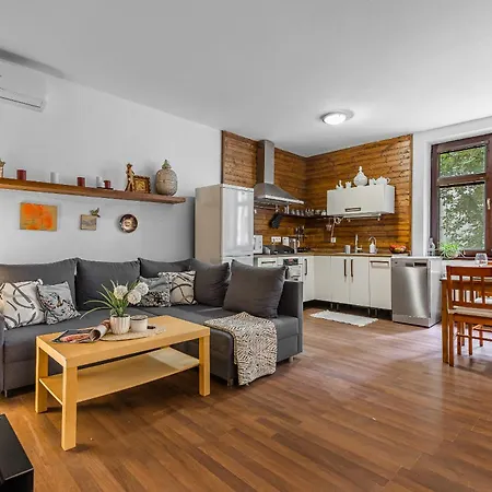Este apartamento está equipado con una cocina completa, que incluye horno de microondas, tetera y nevera para garantizar su comodidad. El restaurante La Mamma, situado a unos 400 metros del alojamiento, sirve comida italiana. El apartamento se encuentra muy cerca de la estación de autobuses Ceska.